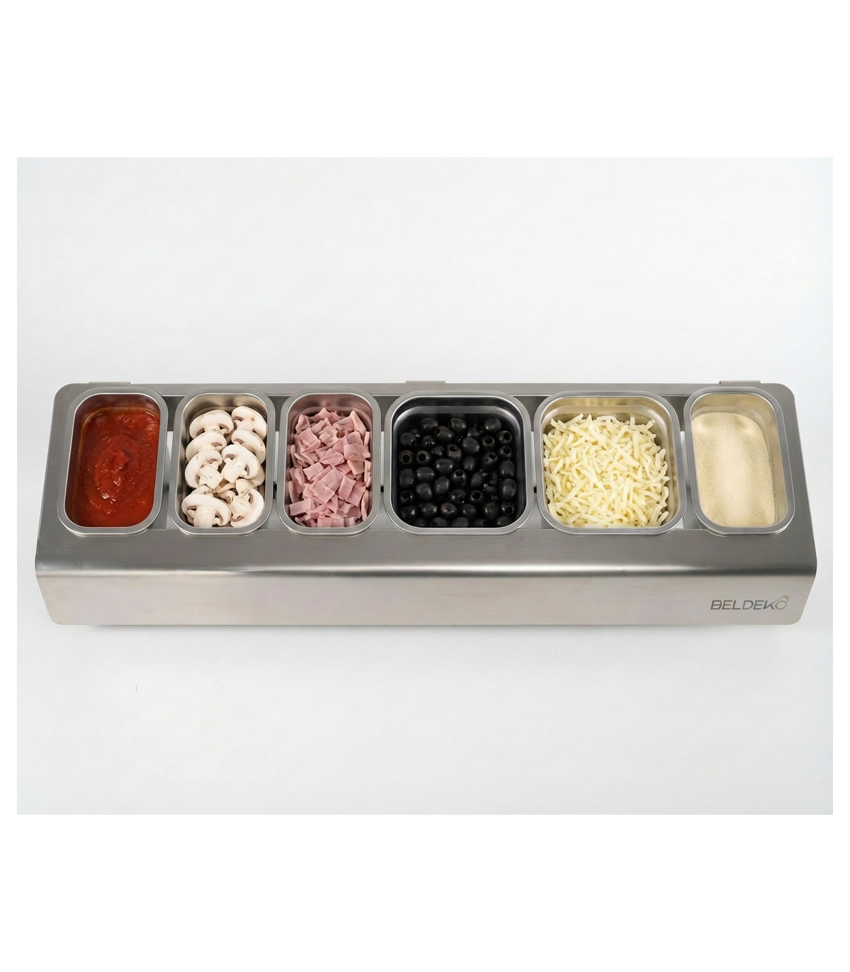 Améliorez la préparation de vos pizzas grâce à la saladette de 6 emplacements, en inox, BELDEKO. Pensée pour offrir un rangement pratique et garantir la fraîcheur de vos ingrédients, elle s’adresse aussi bien aux professionnels qu’aux passionnés de cuisine à la maison.