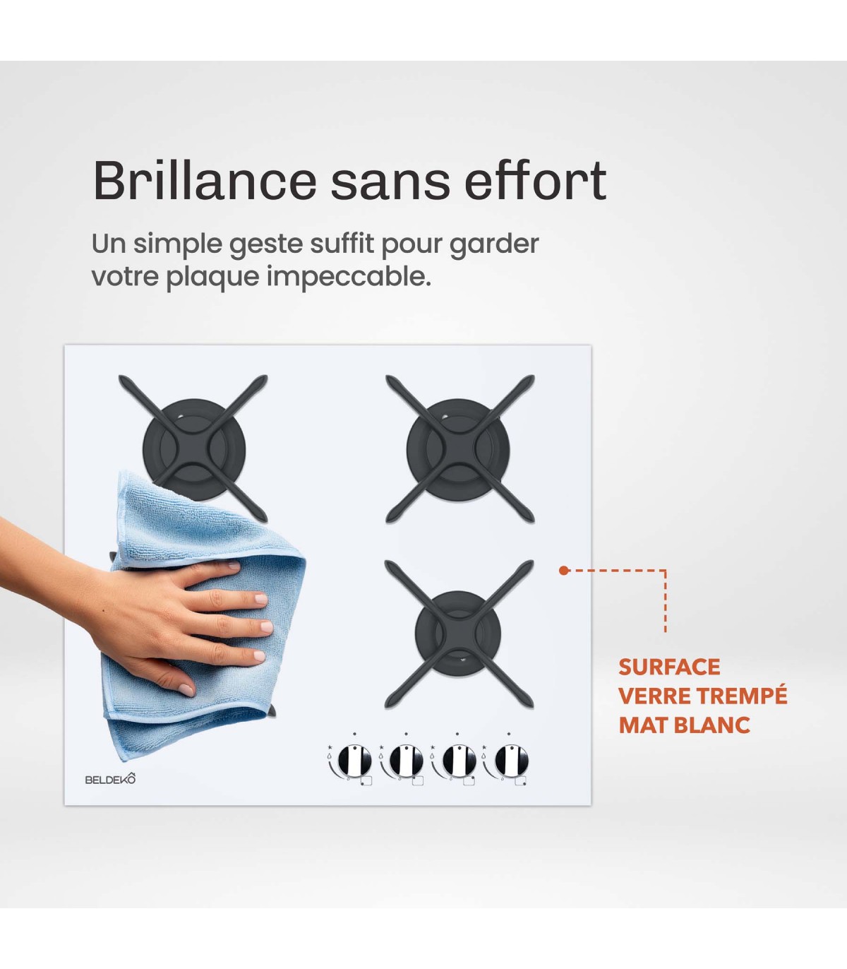 Le plateau est conçu en verre de sécurité trempé de 8 mm d’épaisseur, garantissant une excellente résistance aux chocs thermiques et une solidité durable. Les supports en fonte assurent une parfaite stabilité de vos ustensiles.