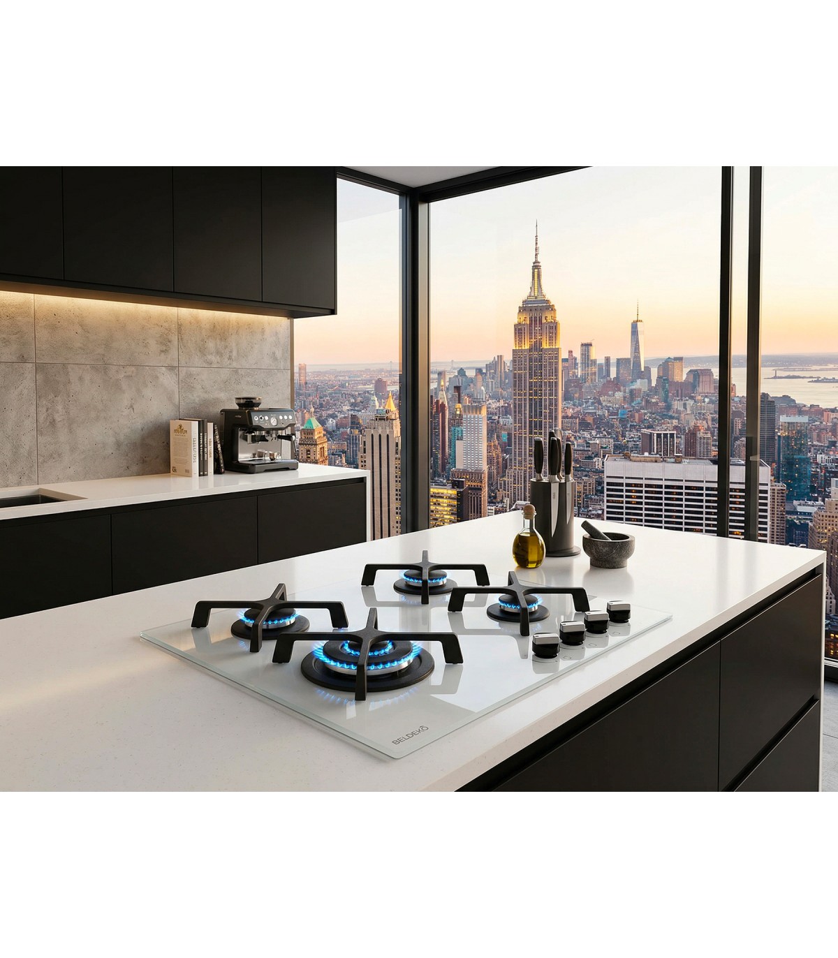 Alliez design contemporain et puissance de cuisson avec cette plaque gaz 4 foyers en verre blanc dépoli. Son esthétique lumineuse et épurée modernise instantanément votre plan de travail tout en offrant la robustesse nécessaire à un usage quotidien intensif.