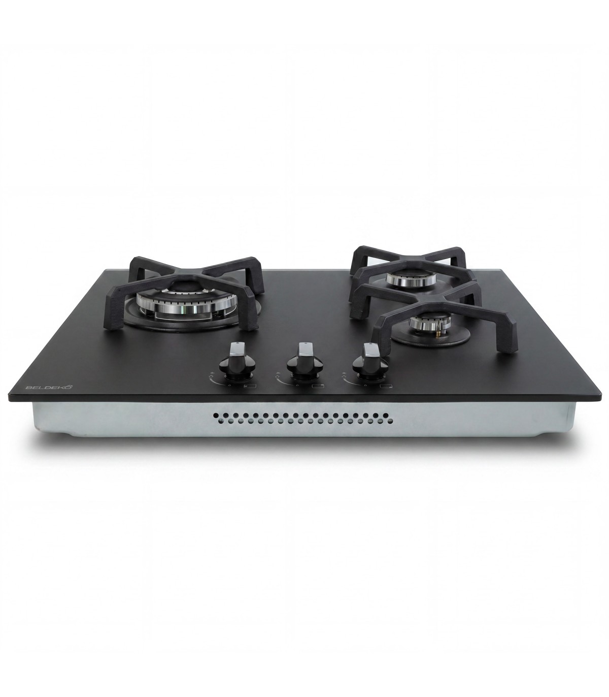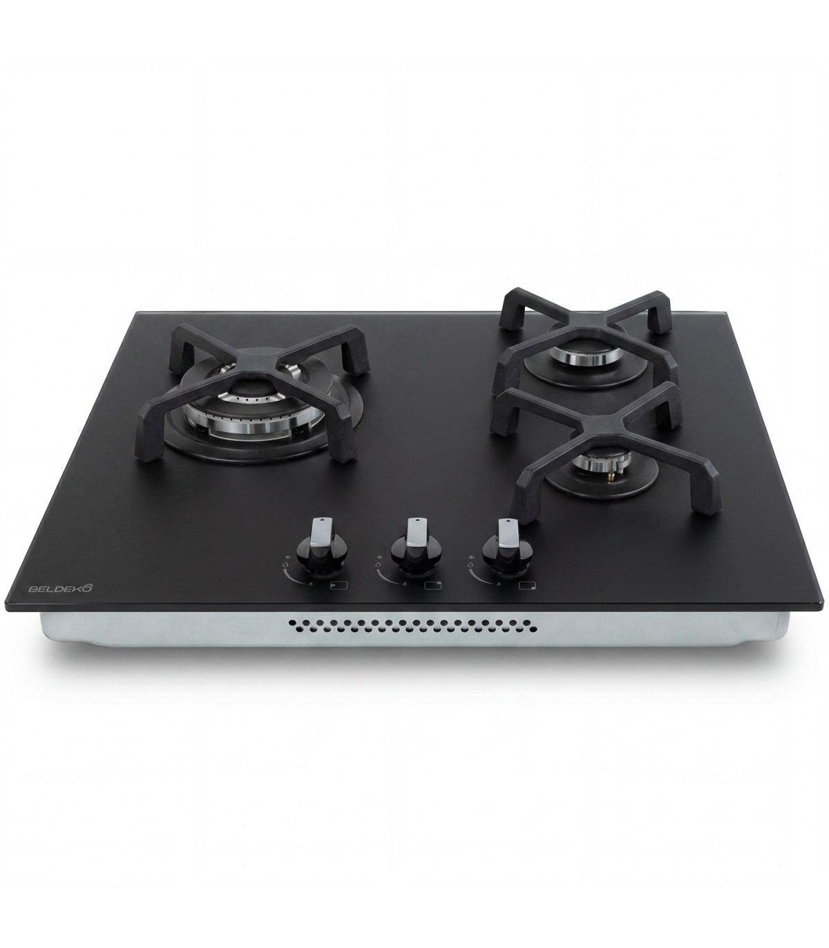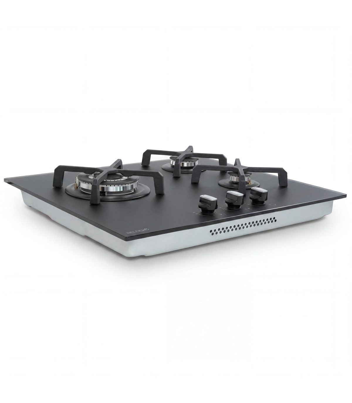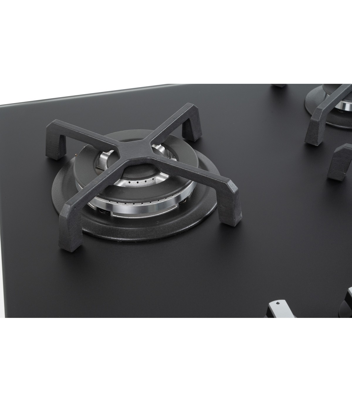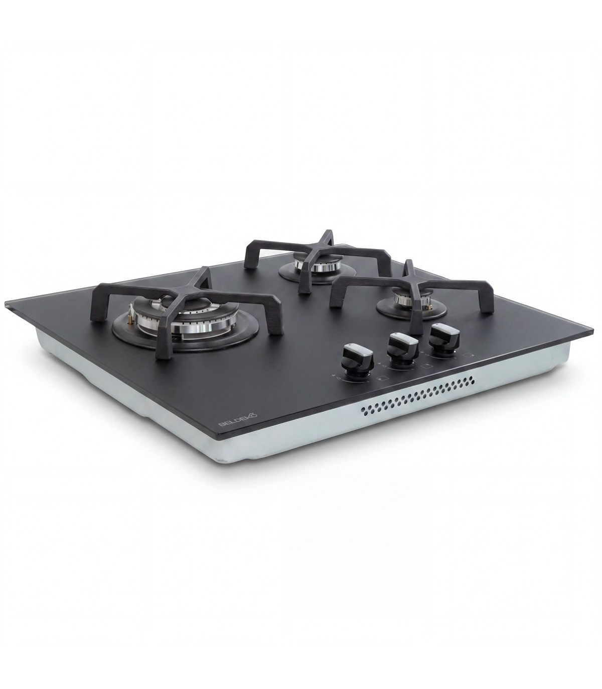 Plaque gaz 3 foyers en verre noir mat, élégante et résistante aux traces et micro-rayures.