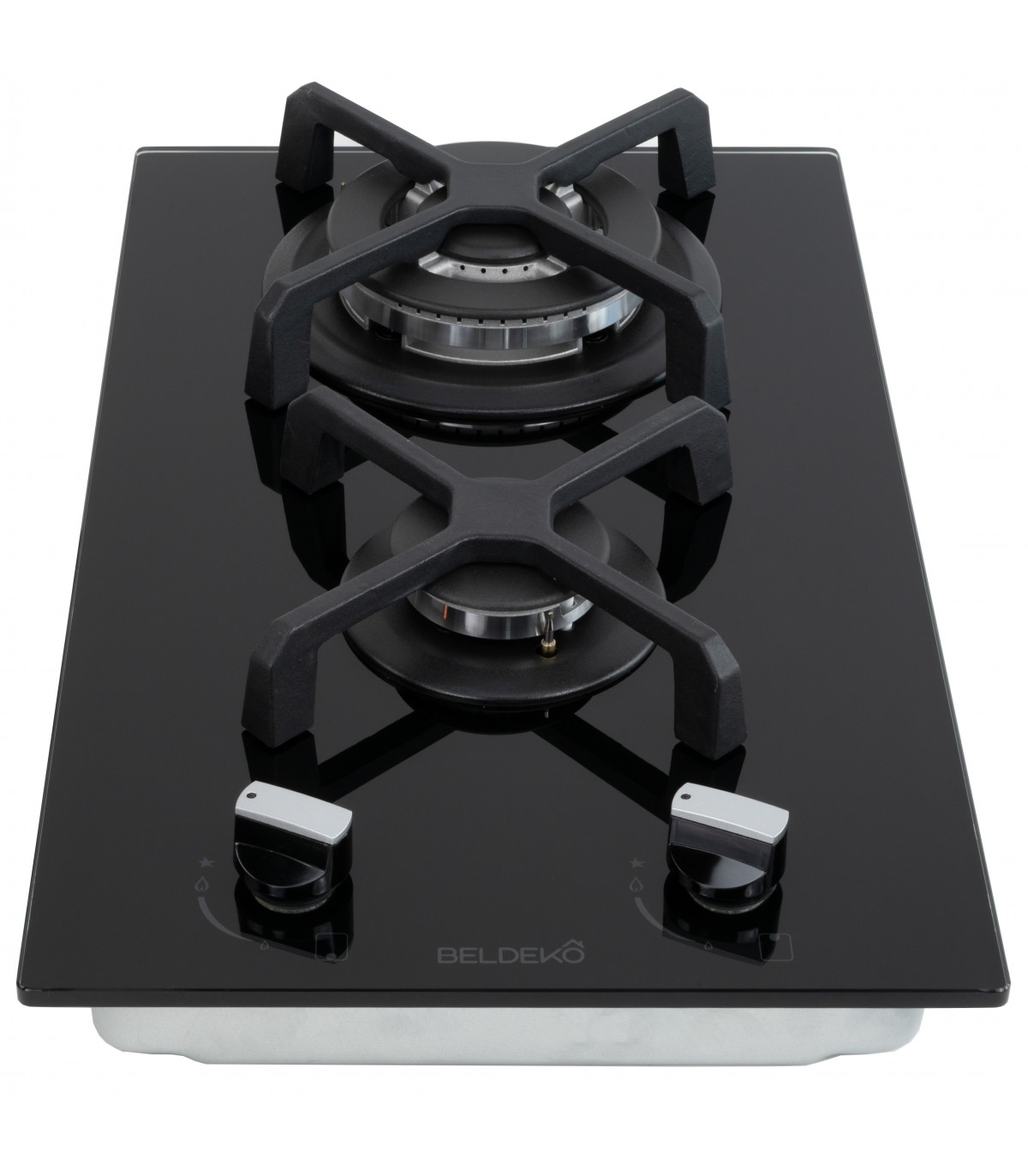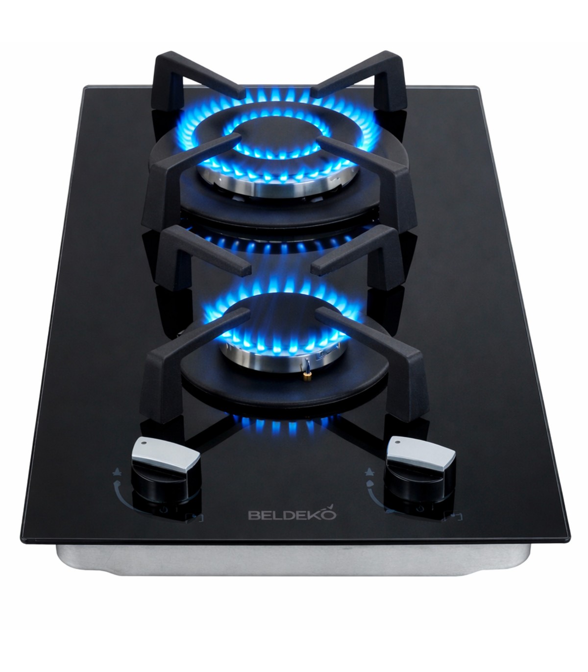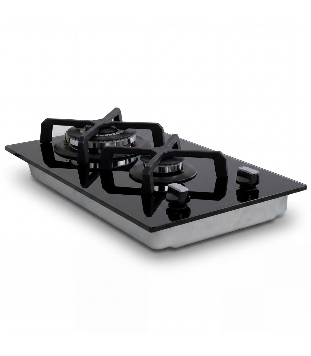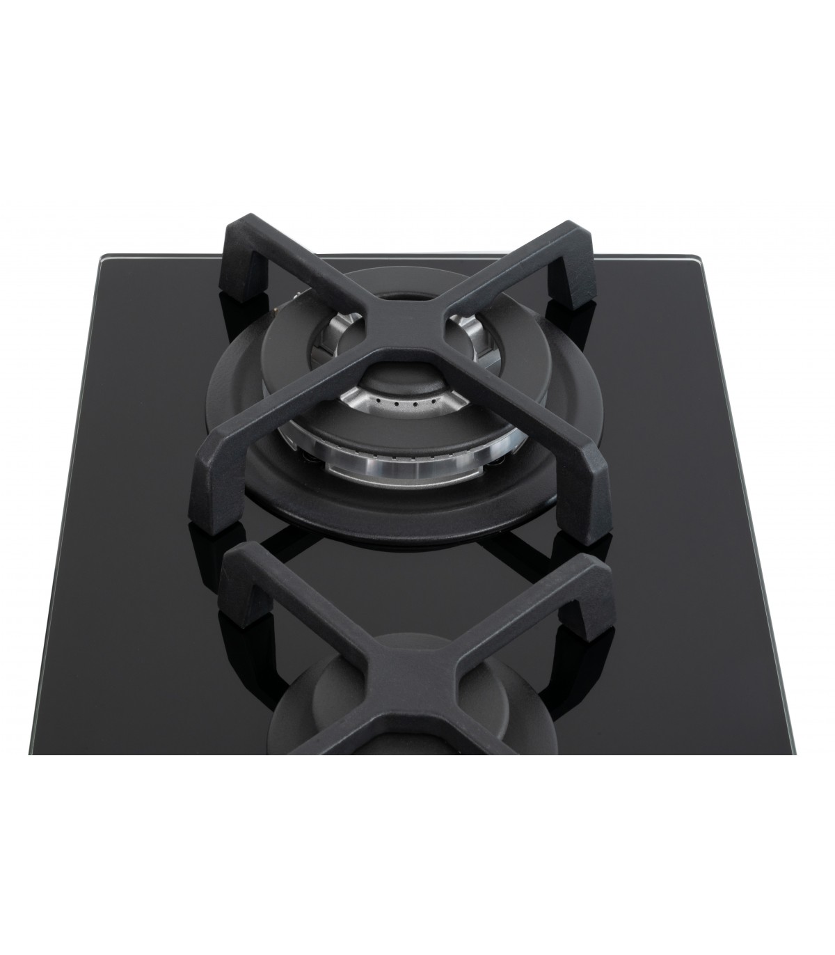 Plaque gaz 2 foyers en verre noir mat, élégante et moderne avec finition haut de gamme.