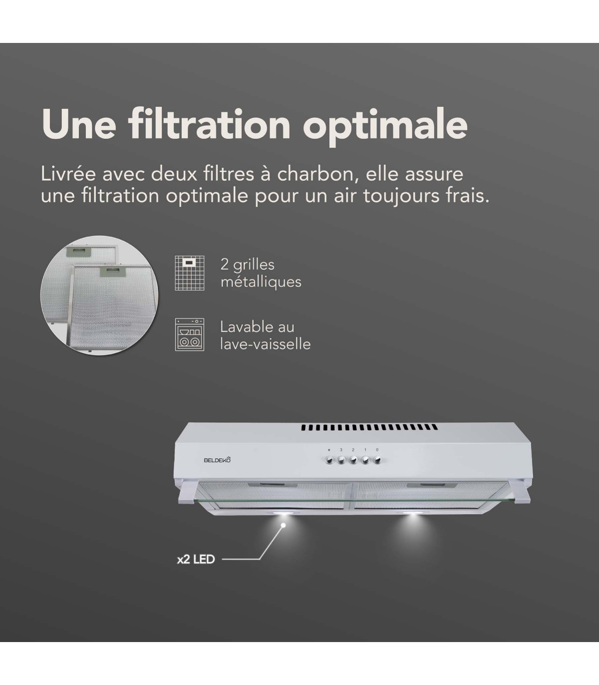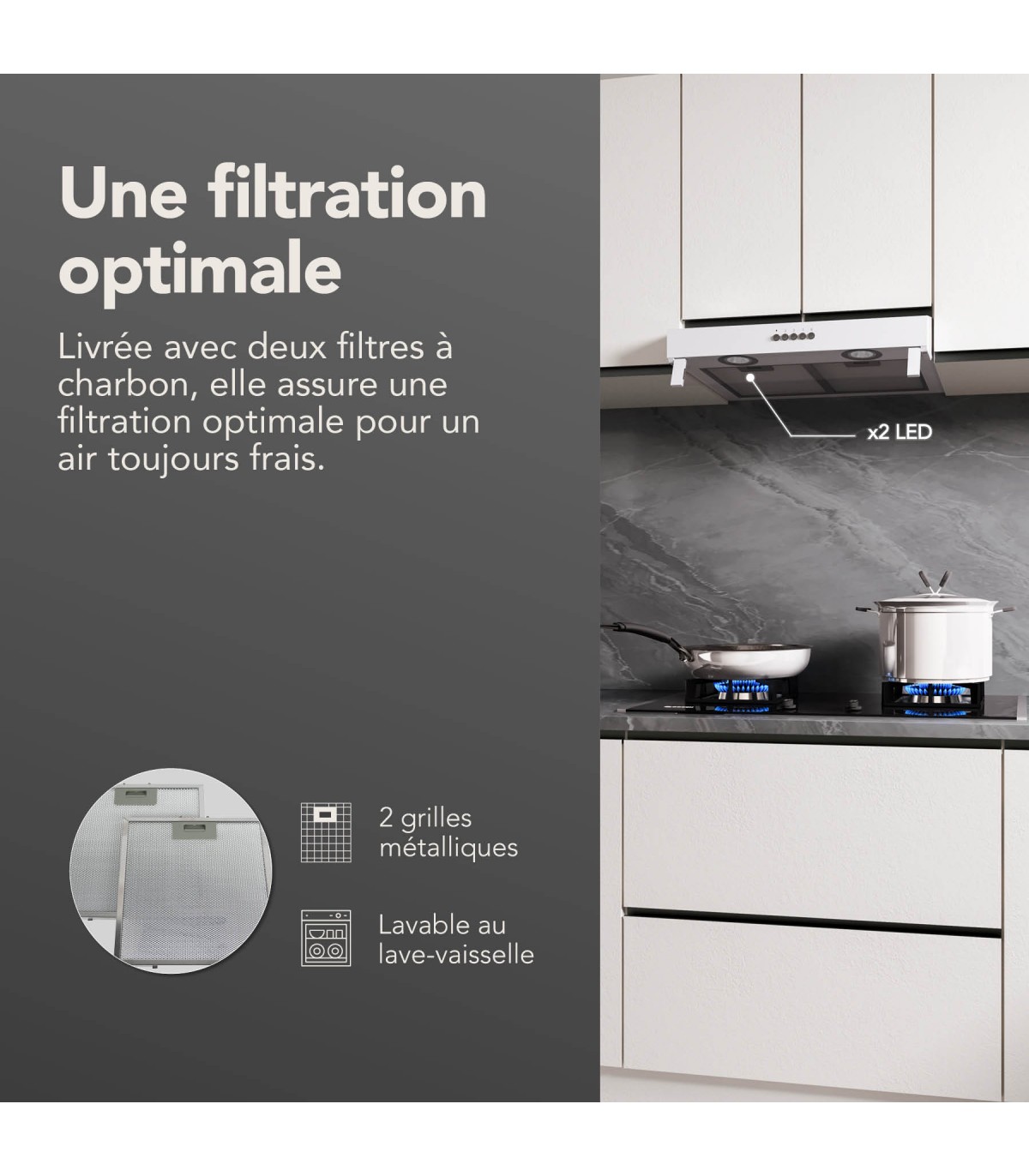 - Filtration optimale : Livrée avec 2 filtres à charbon et 2 filtres à graisse