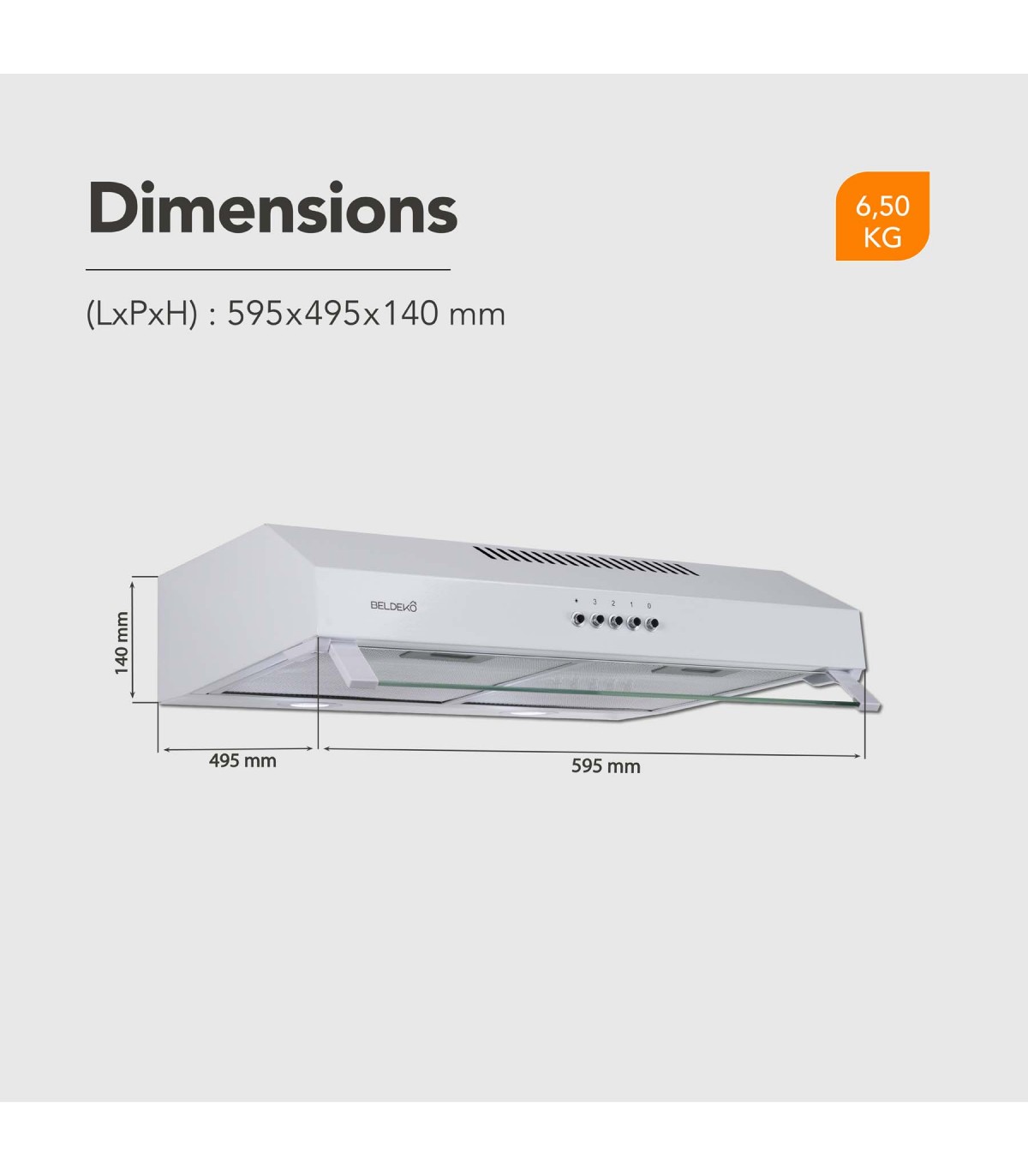 - Dimensions (L x P x H) : 595 x 495 x 140 mm