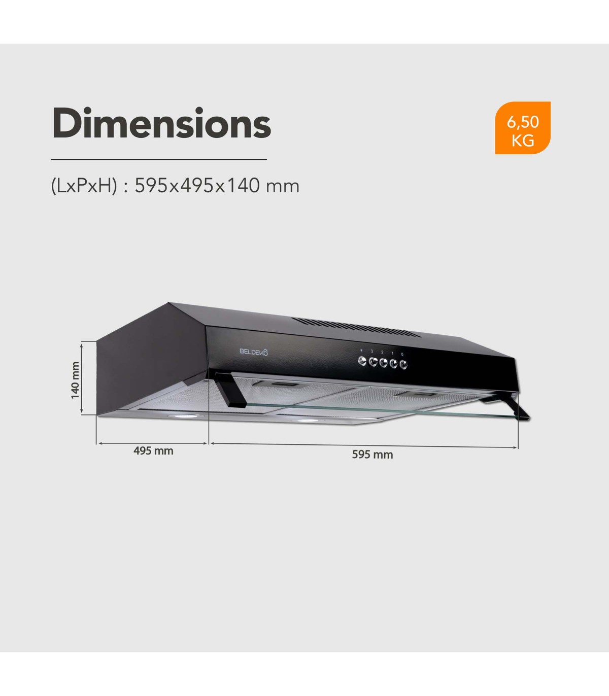 - Dimensions (L x P x H) : 595 x 495 x 140 mm