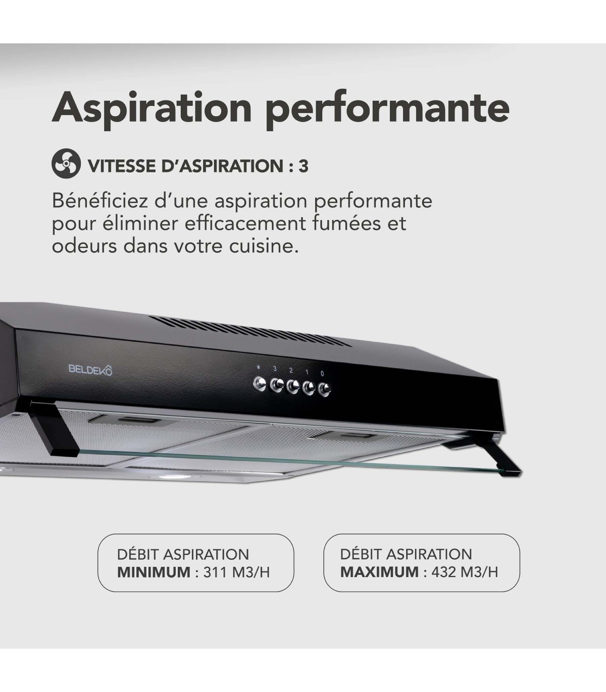 - Capacité d’aspiration exceptionnelle : 435 m³/h pour une ventilation efficace