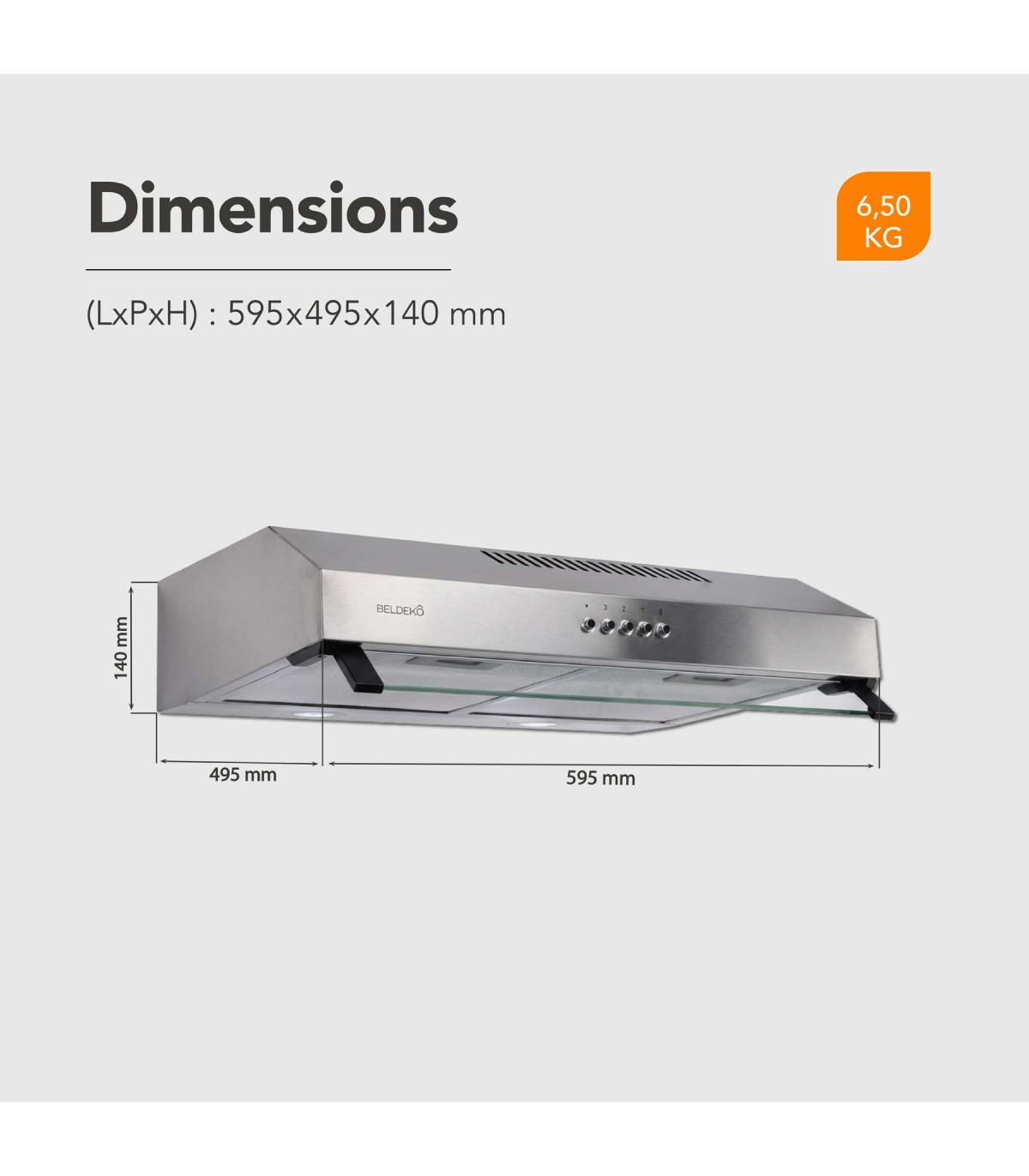 - Dimensions (L x P x H) : 595 x 495 x 140 mm