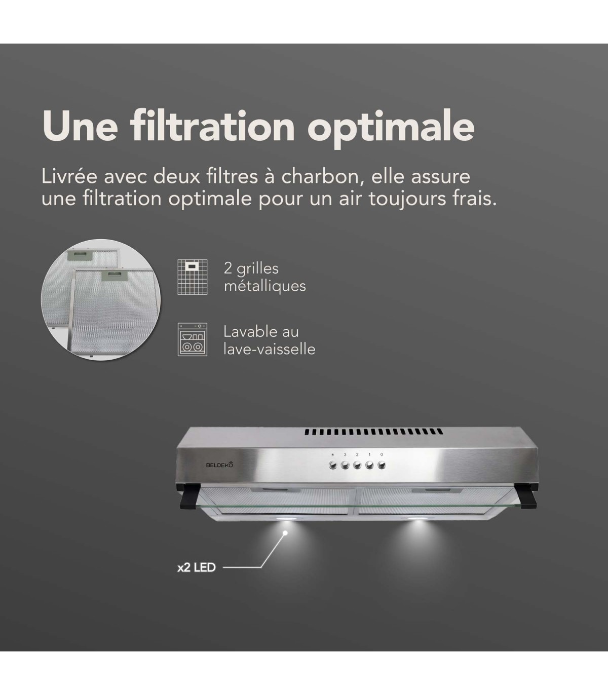 - Filtration optimale : Livrée avec 2 filtres à charbon et 2 filtres à graisse