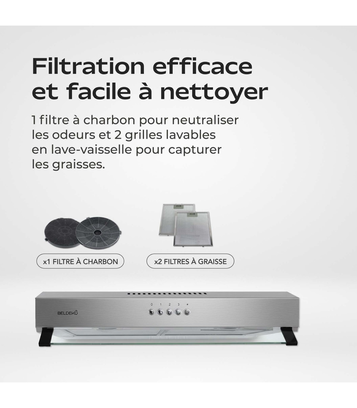 - Efficacité de filtration des graisses : E