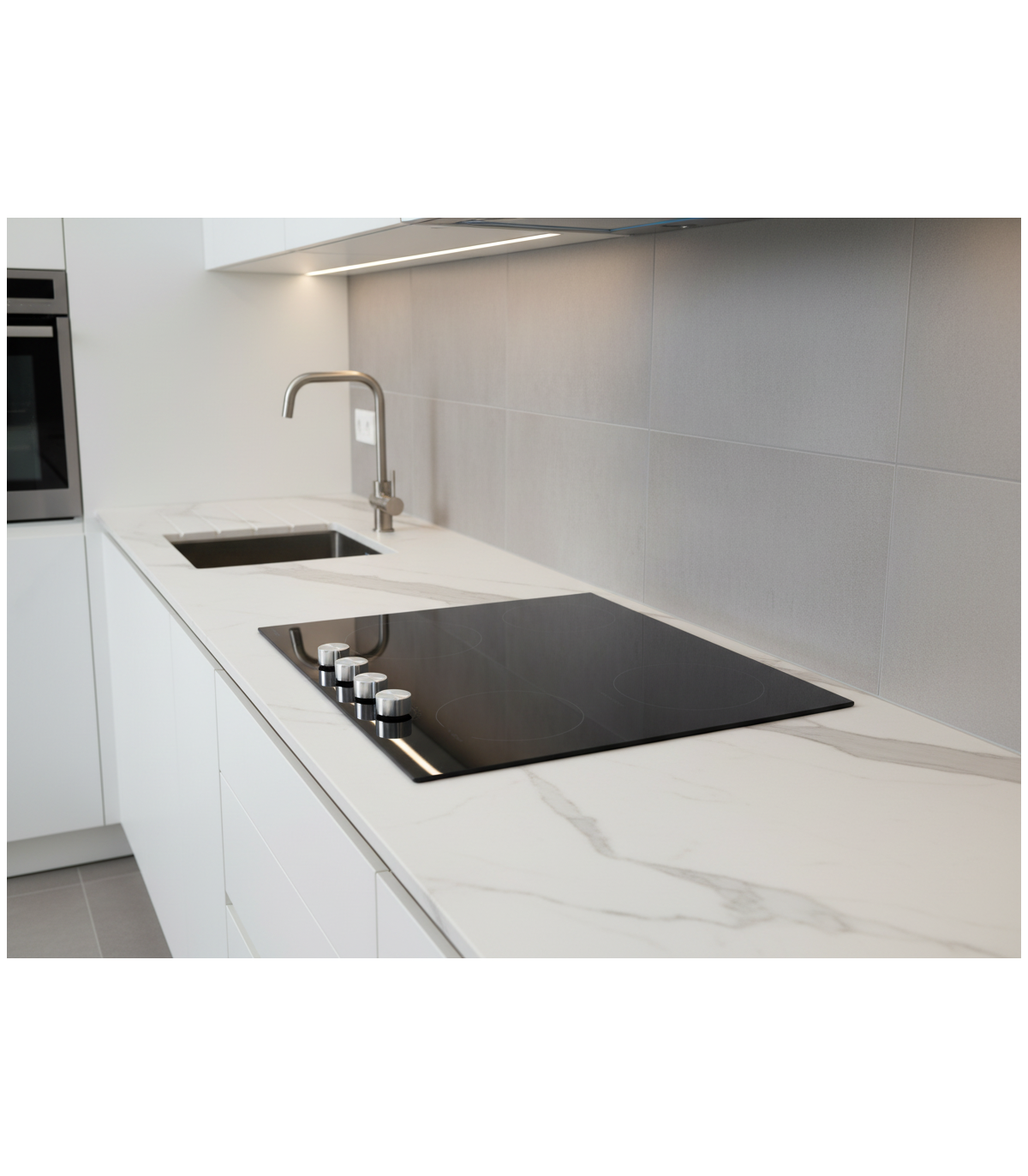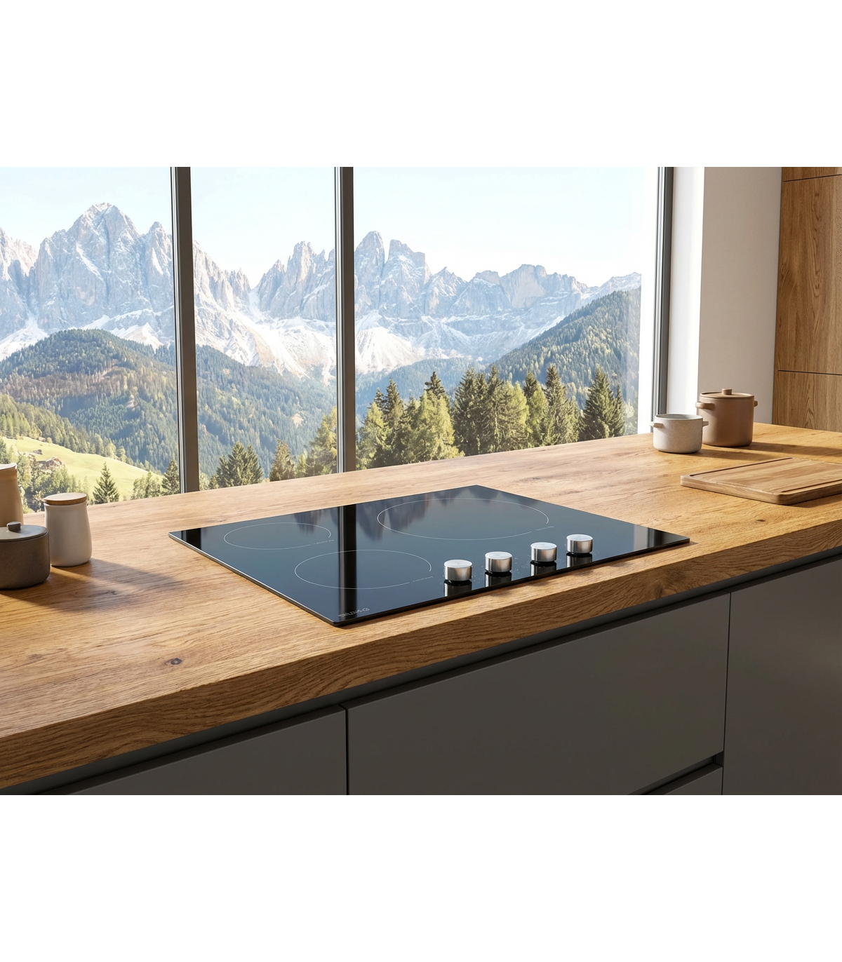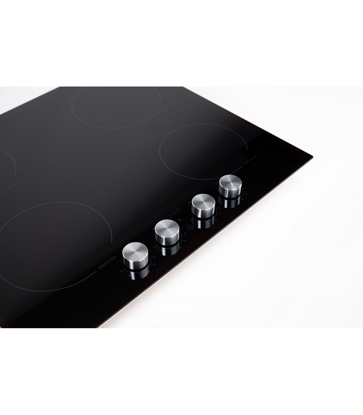 Plaque induction 59 cm avec 4 foyers, idéale pour tous les types de cuisine et pour une cuisson rapide et précise.