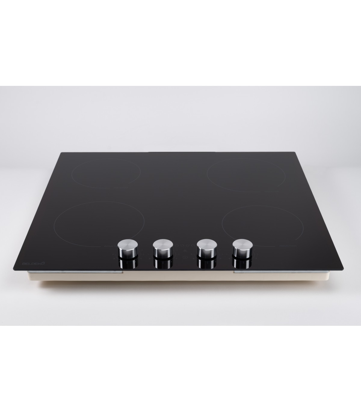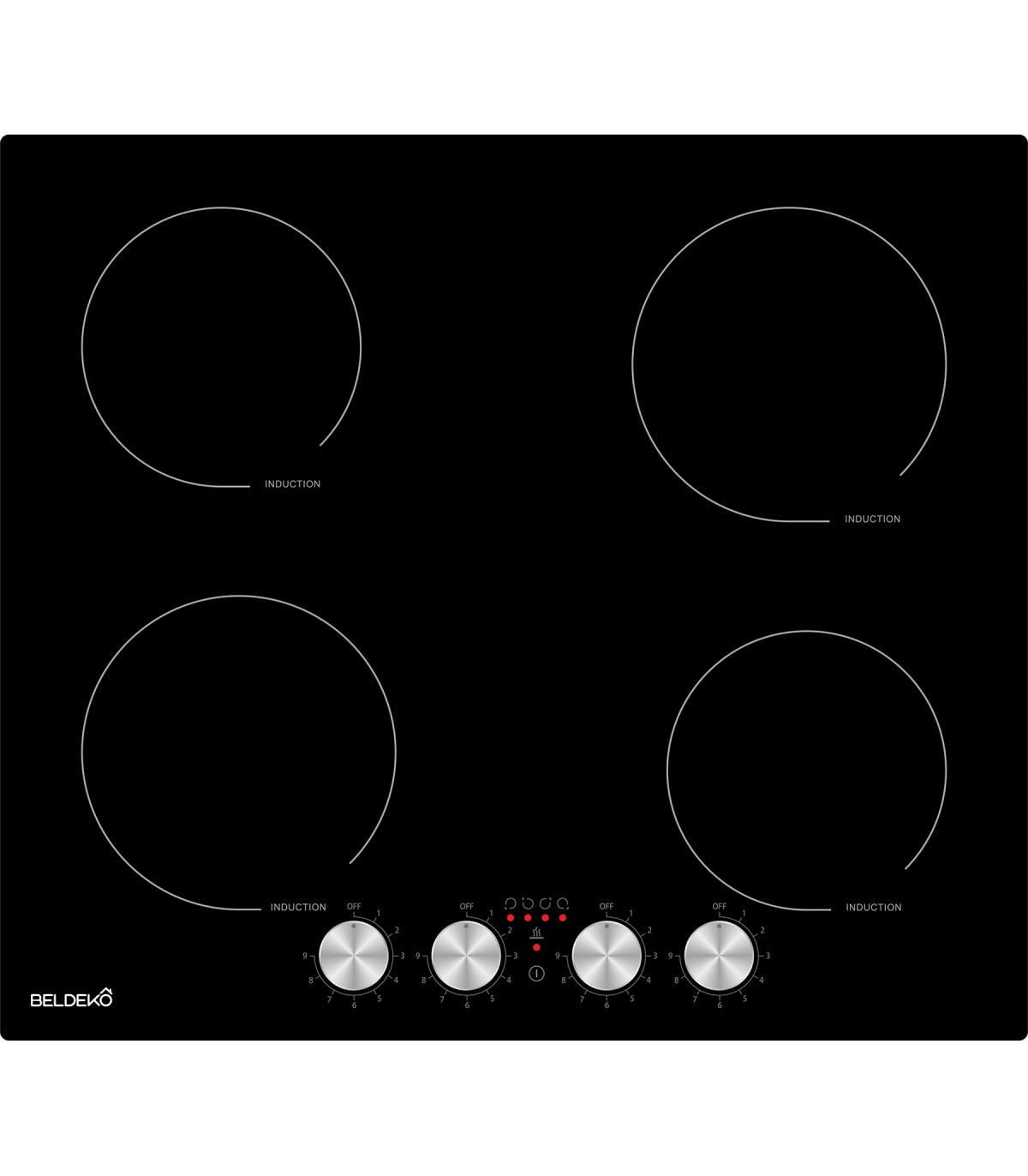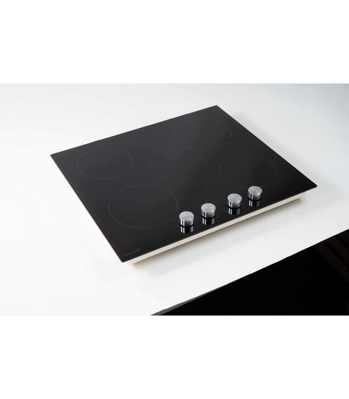 Plaque induction 59 cm avec 4 foyers, idéale pour tous les types de cuisine et pour une cuisson rapide et précise.