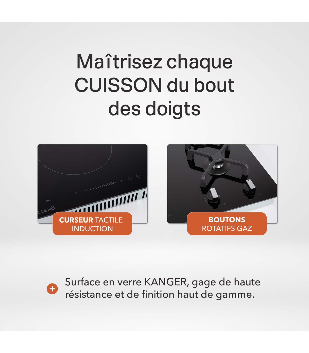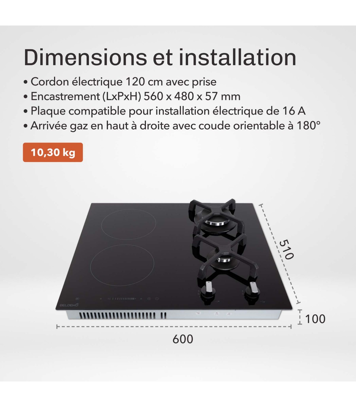 Combinez tradition et modernité avec cette plaque de cuisson mixte 2 foyers gaz + 2 foyers induction BELDEKO. Elle offre la réactivité du gaz et la précision de l’induction dans un seul appareil.