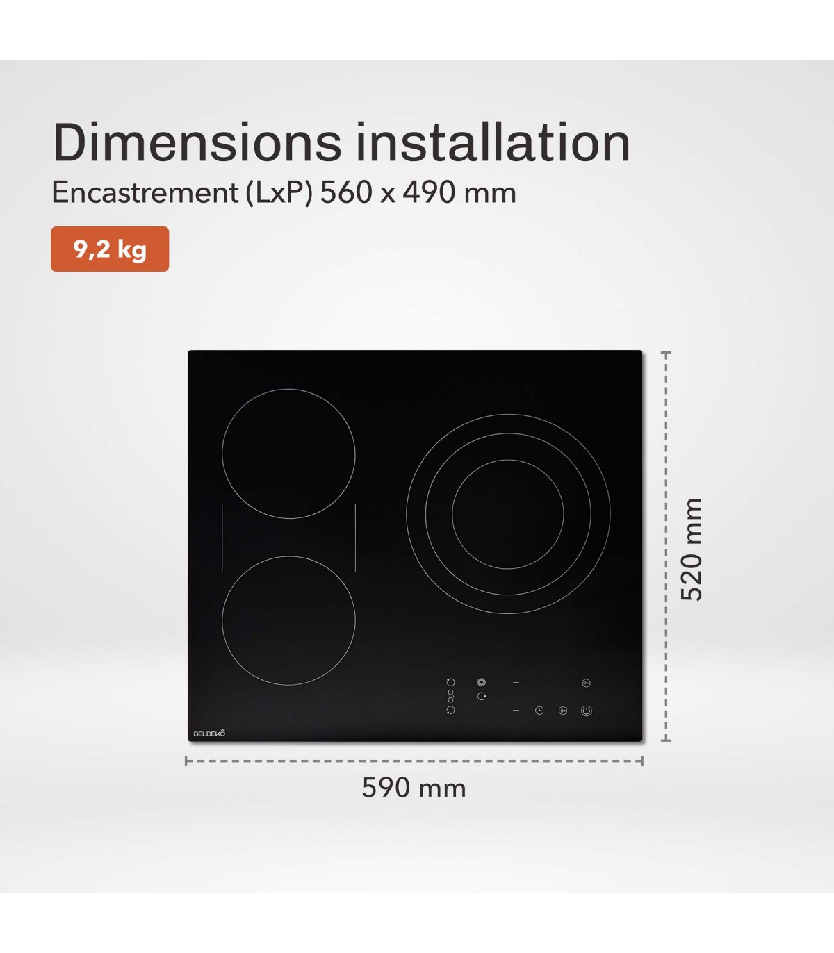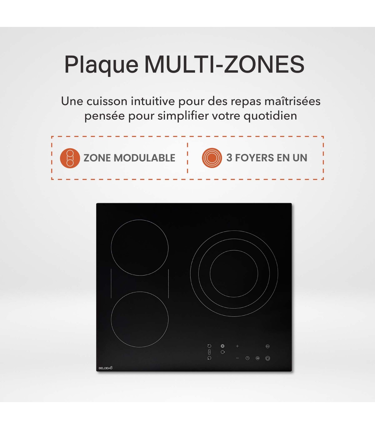 La plaque de cuisson vitrocéramique BELDEKO TV3V-171 a été pensée pour offrir un confort de cuisson optimal grâce à sa configuration 3 zones intelligentes et sa fonction Flex.